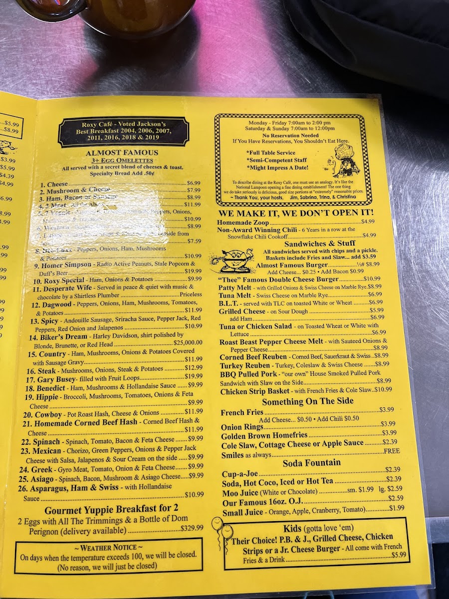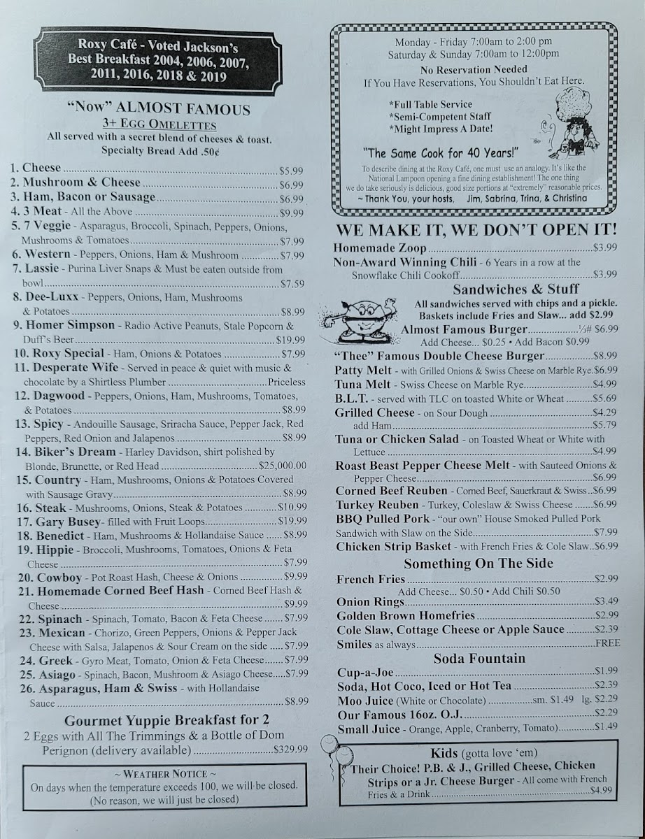 The menu at Roxy Cafe offers a straightforward, comforting selection that fits perfectly with its welcoming, old-school diner vibe. It's a place where classic American breakfast and casual lunch favorites come together in simple, satisfying ways. Whether you arrive early to start your day with hearty eggs Benedict or linger over a big cinnamon roll and strong coffee, the offerings feel unpretentious and made to enjoy in good company.